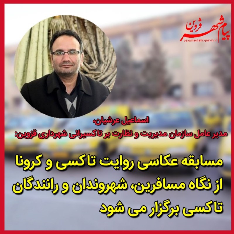 اسماعیل عرشیان مدیرعامل سازمان مدیریت و نظارت بر تاکسیرانی شهرداری قزوین، از برگزاری مسابقه عکاسی «روایت تاکسی و کرونا» از نگاه مسافرین، شهروندان و رانندگان تاکسی خبر داد.