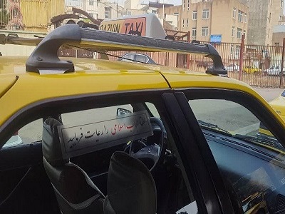 نصب برچسب رعایت حجاب اسلامی در تاکسی های سطح شهر قزوین